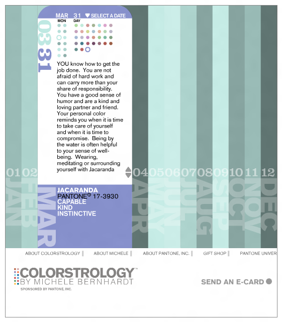 Soñador e ilusuorio, este color ayuda a guiar a personas entre el mundo conciente y de la subconciencia. Faor Aqua evoca las cualidades de la confianza y claridad. Neptuno, diso de los océanos, preside sobre el mes de Marzo.